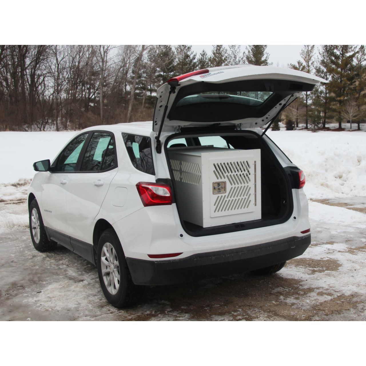 The Express Series Dog Box is typically used inside SUV’s, vans and under truck toppers.  It is also great for campers and toy haulers.  Optional angled top corners improve fit in SUV’s and vans.  Herringbone vents on the side panels compliment the herringbone door vent design and provide maximum air flow and circulation in both heated and airconditioned vehicles.  Center dividers (as applicable) also feature herringbone vents for circulation between dog compartments.