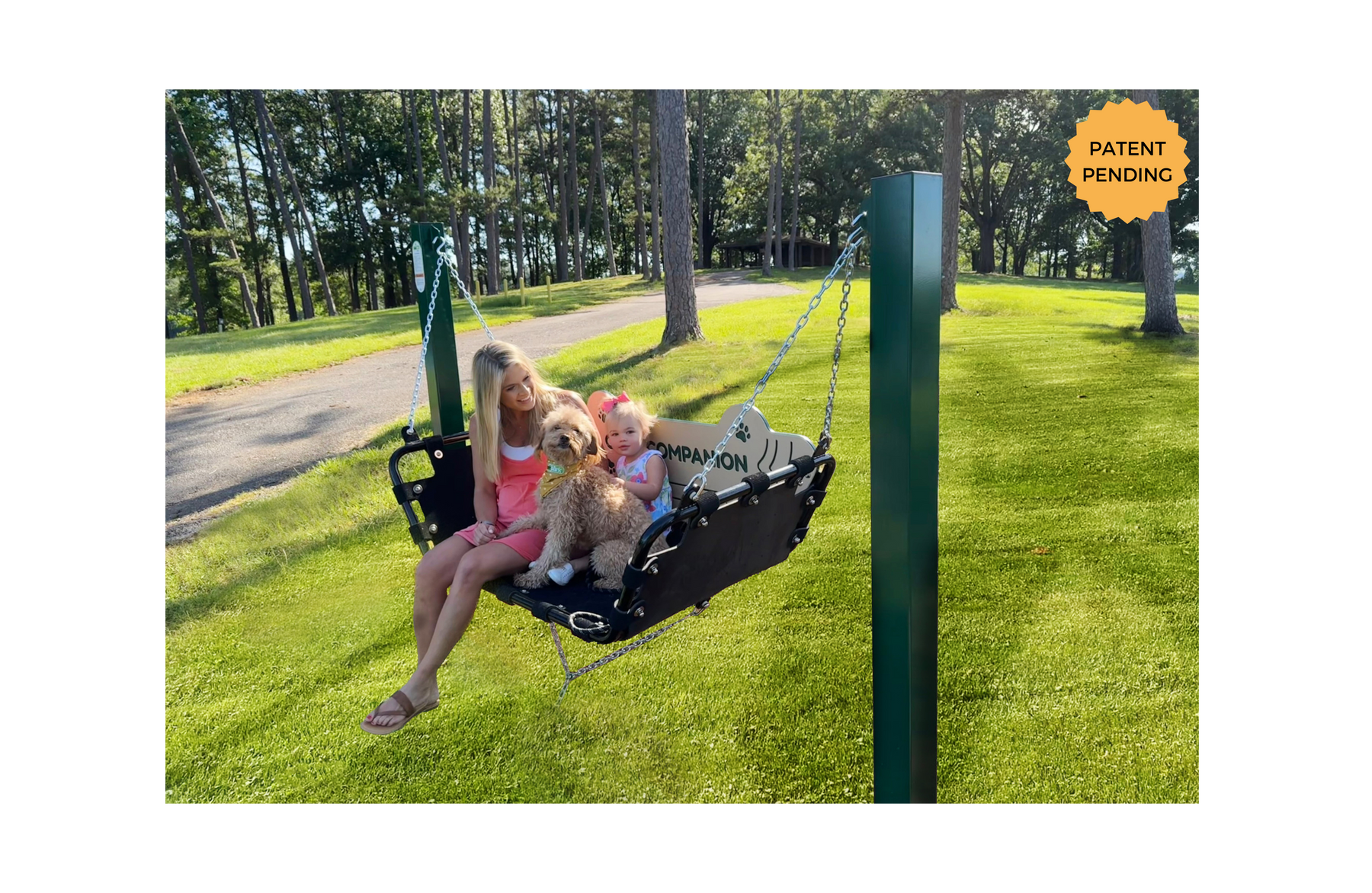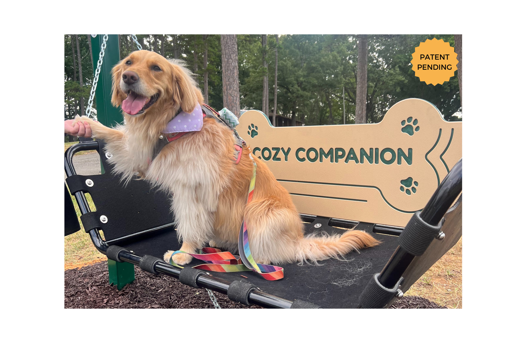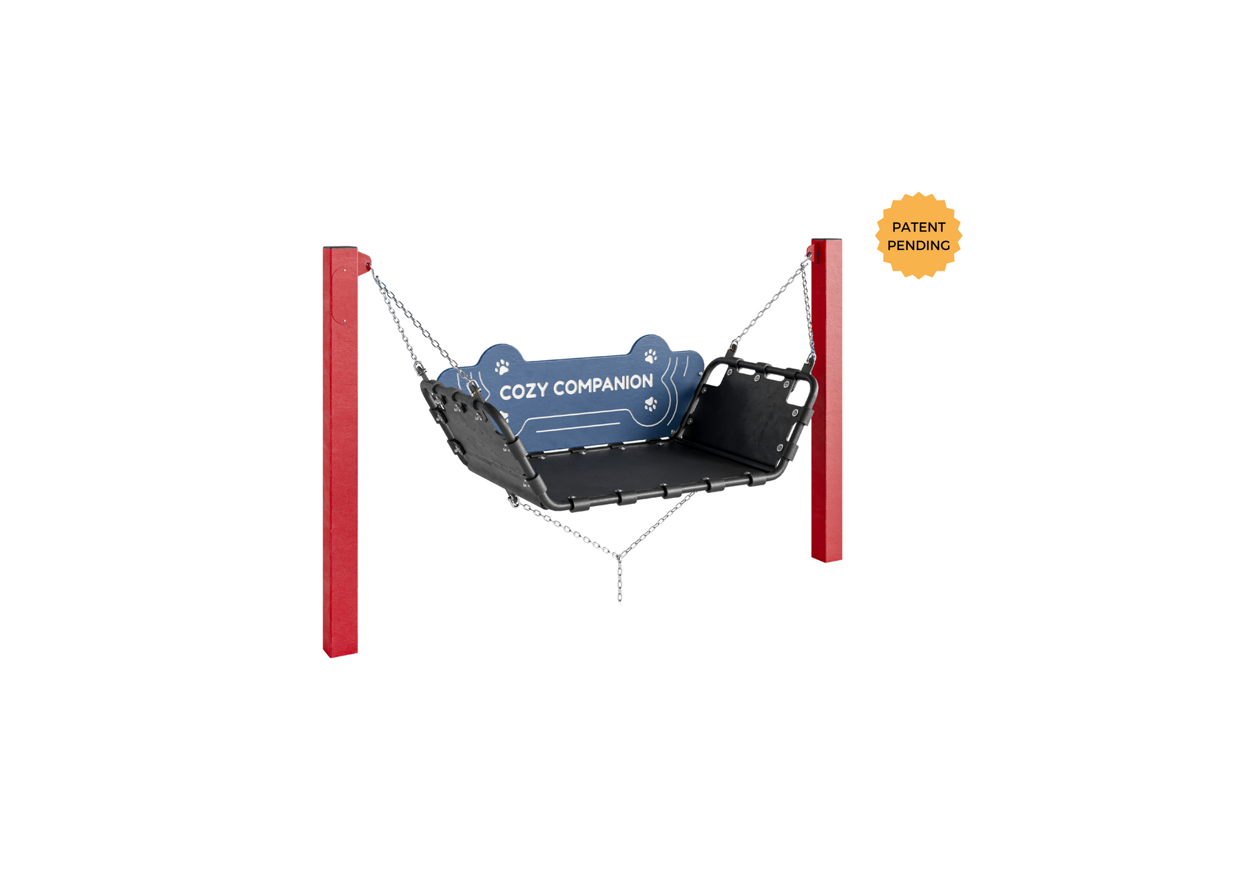 This patent pending design lounger provides a swaying bench so you and your pup can snuggle up and take a break before, after, or during your play date at the dog park.
