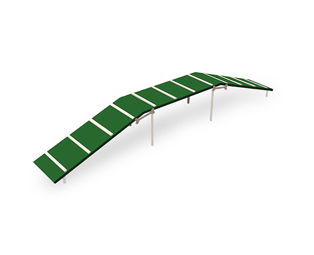 The Dog Walk is the largest BarkPark component and is made up of three non-slip planks supported by mounted posts. Dogs can walk or run up, across, and down the planks based on their individual level of balance and confidence. Mounts inground or surface mounts with anchor bolts. Canine Coated.