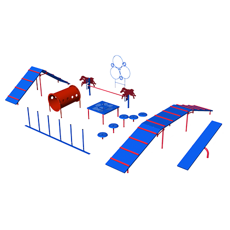 The most advanced course offers nine (9) activities, meeting the needs of dogs of various sizes and abilities. The agility-based play equipment takes the park to the next level and offers activities suitable for the family pet to the seasoned athlete.