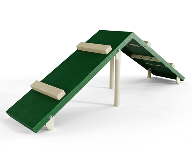 Let them be King! The King of the Hill provides a challenge for dogs smaller in size to walk or run up an incline and descend the other side at their own pace and confidence level. Endurance and balancing capacity are also developed. Mounts inground or surface mounts with anchor bolts. Canine Coated.
