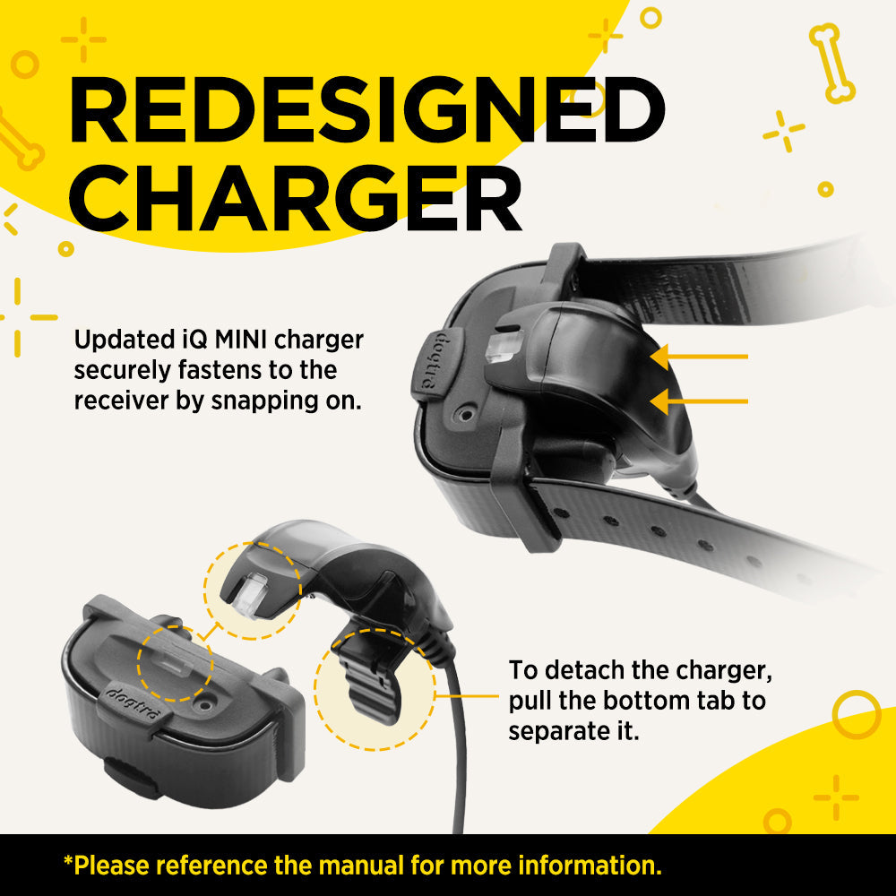 The Dogtra iQ MINI delivers all the essential features of a remote trainer in a petite form specific for smaller dogs. It offers the lightest and smallest receiver, weighing at 1.3 ounces, with ergonomically designed plastic contact points, making it ideal for dogs as small as 7 pounds. While compact, it is packed with features such as a 400-yard range, 100 Nick/Constant stimulation levels, and a Pager vibration.