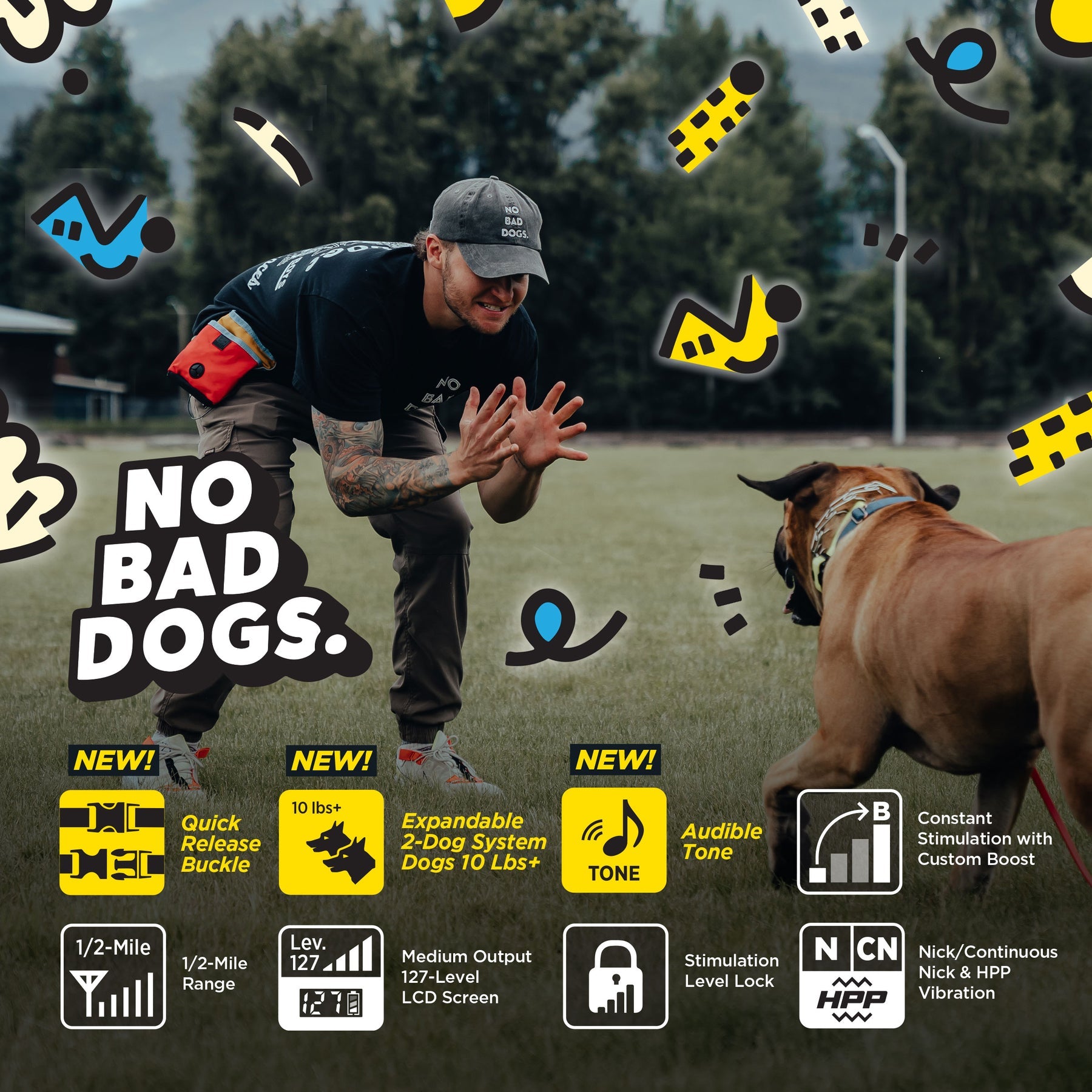 Our newest e-collar collaboration with Dog Trainer Tom Davis and inspired by his No Bad Dogs mantra, this e-collar is packed with features designed to make training easier and more effective. Built with input from Tom’s community, it comes in bold, audience-voted green and yellow for a standout look. New features include 2-Dog expandable capability, perfect for handling multiple dogs on a single remote as your pack grows. The new Tone feature gives you a non-corrective cue to catch your dog’s attention, while BOOST lets you go from asking to telling in one tap. The Safety Level Lock keeps corrections safe and steady, and the ½ mile Waterproof Off-Leash Range ensures it’s ready for every adventure—from beaches to mountain trails.